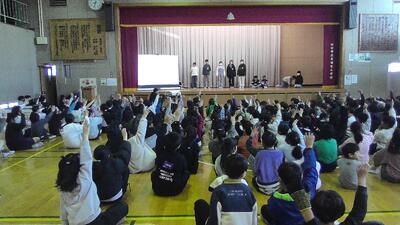 今朝の朝礼では、給食委員会の児童が、配膳員さんに感謝の気持ちを伝えました。