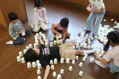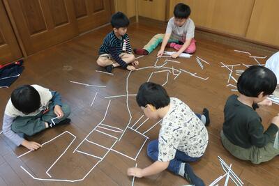 ものをどう並べたらどんな形が作れるか、考えながら楽しく学習していました。