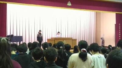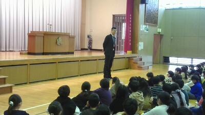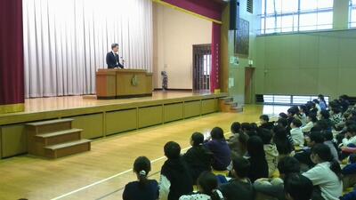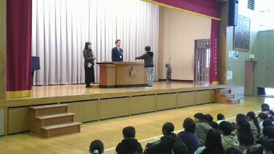 終業式の校長講話の中で、「楽器演奏が上手になった人」「友達と協力して学習・生活できるようになった人」「進んで挨拶できた人」など、各自頑張ったことやできるようになったことを振り返り、うなずきながらお話を聞いていました。2学期での自分の成長を感じることができたようです。
